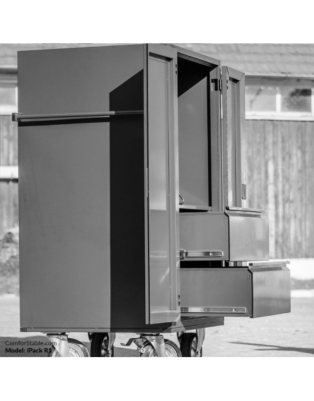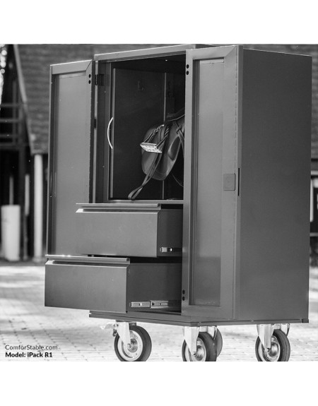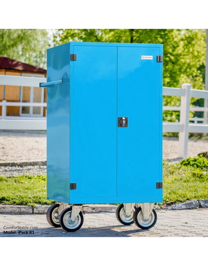 Doskonale przemyślana przez jeźdźców mobilna szafka na siodła skokowe, wszechstronne oraz ujeżdżeniowe. Niezwykle kompaktowa, a jednocześnie pojemna paka, która swobodnie pomieści wszystkie akcesoria dla konia oraz jeźdźca. Jest to produkt z kategorii premium o wysokiej trwałości wykonany ze stali ocynkowanej, malowanej proszkowo, co daje dużą przewagę nad innymi pakami dostępnymi na rynku. iPack R1 jest niezwykle odporna na warunki zewnętrzne, uderzenia i codzienne użytkowanie co zapewnia jej wieloletnią trwałość.