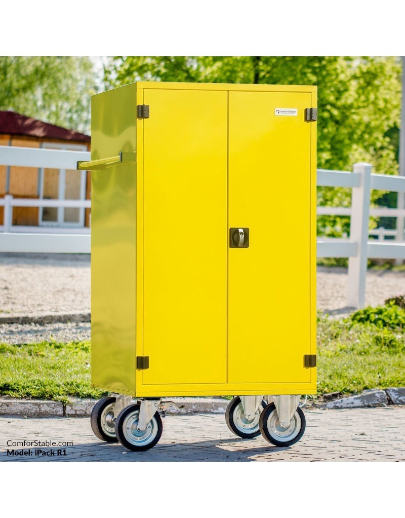 Doskonale przemyślana przez jeźdźców mobilna szafka na siodła skokowe, wszechstronne oraz ujeżdżeniowe. Niezwykle kompaktowa, a jednocześnie pojemna paka, która swobodnie pomieści wszystkie akcesoria dla konia oraz jeźdźca. Jest to produkt z kategorii premium o wysokiej trwałości wykonany ze stali ocynkowanej, malowanej proszkowo, co daje dużą przewagę nad innymi pakami dostępnymi na rynku. iPack R1 jest niezwykle odporna na warunki zewnętrzne, uderzenia i codzienne użytkowanie co zapewnia jej wieloletnią trwałość.