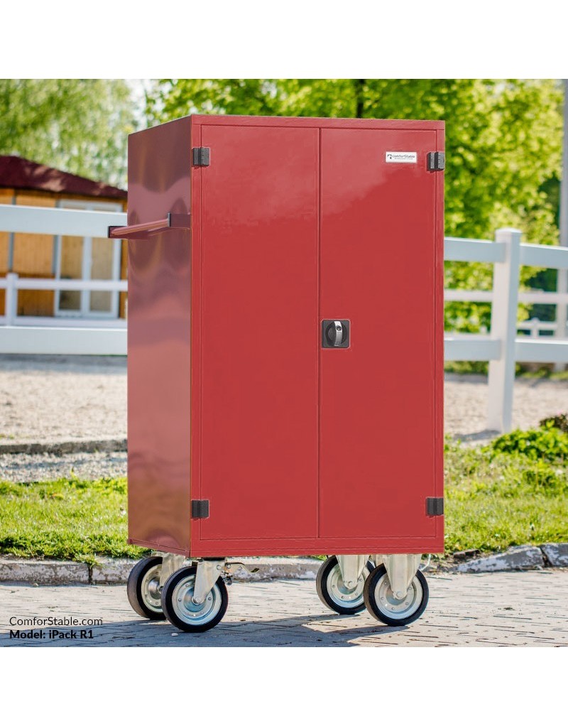 Doskonale przemyślana przez jeźdźców mobilna szafka na siodła skokowe, wszechstronne oraz ujeżdżeniowe. Niezwykle kompaktowa, a jednocześnie pojemna paka, która swobodnie pomieści wszystkie akcesoria dla konia oraz jeźdźca. Jest to produkt z kategorii premium o wysokiej trwałości wykonany ze stali ocynkowanej, malowanej proszkowo, co daje dużą przewagę nad innymi pakami dostępnymi na rynku. iPack R1 jest niezwykle odporna na warunki zewnętrzne, uderzenia i codzienne użytkowanie co zapewnia jej wieloletnią trwałość.